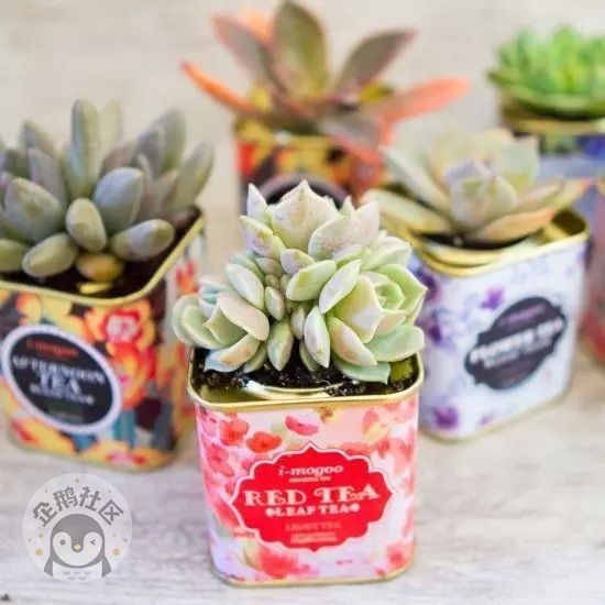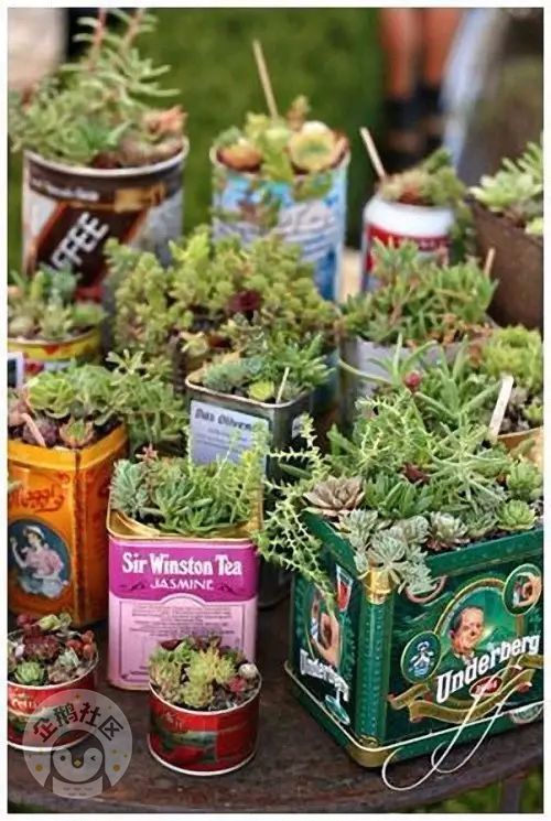 - 很多姑娘们喜欢园艺,每次买回新植物总愁没盆种,其实家里随手找出几件旧物,就是能变成漂亮的盆栽!【茶叶盒】家里有爱喝茶和咖啡的人,一定少不了囤有很多这种锡铁盒子,这些大大小小的盒子用来种小盆栽、小巧可爱的多肉植物,放在家里美极了。