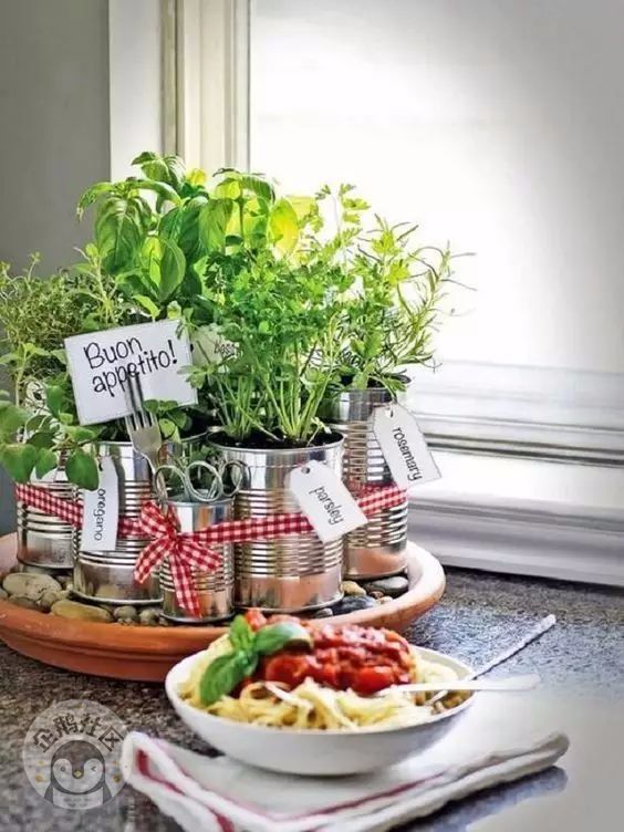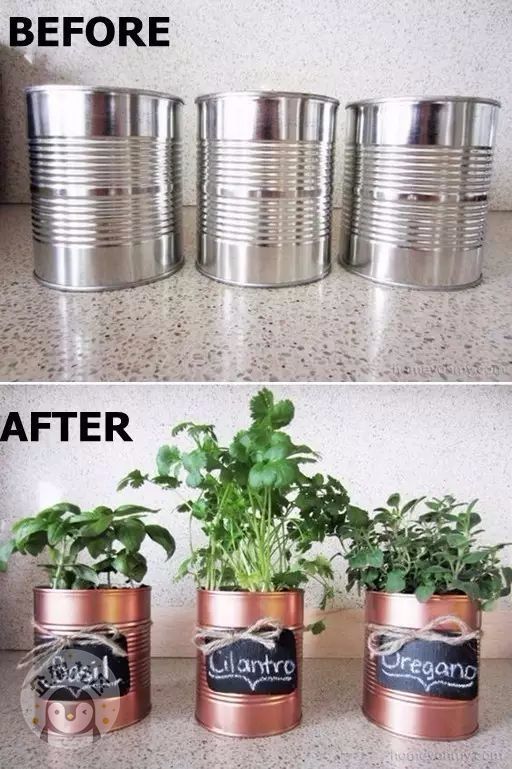 你瞧,将奶粉罐外的包装纸撕掉,漆上一层金色的油漆,简单装饰一下,就变成了ins网红同款的盆栽,让你的厨房立刻变得高大上起来。