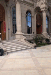 譬如下图,先别急着数别墅有几层、罗马柱有多少根,画面中的隐藏亮点其实是那几棵罗汉松。