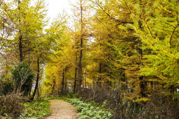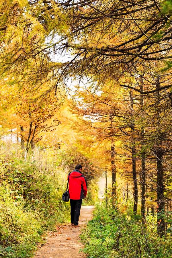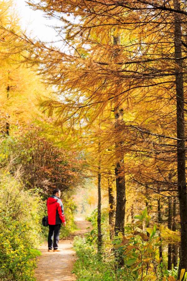 秋去冬来,金黄色彩叶覆盖山坡,尽快去欣赏这一美景。